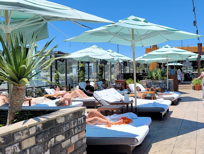 The Highlight Room also boasts a bar and Grill section at the far corner of the rooftop opposite the pool. Here, you’ll find dinner tables and a full-service grill offering a delectable array of grilled dishes. The space is adorned with low tables, comfortable lounge seating, and a fully stocked bar that offers bottle service for those seeking refreshments. This area exudes a more relaxed ambience, making it the perfect spot for drinks and conversation.