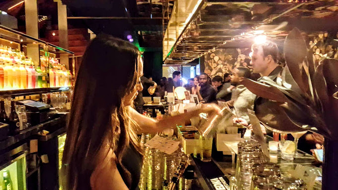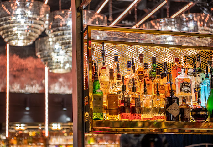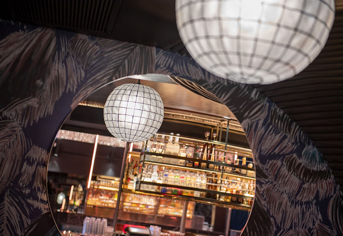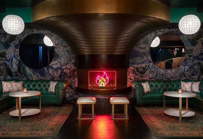 The venue boasts a sculpted fireplace, mid-century banquettes, and a state-of-the-art kinetic ceiling adorned with 15 folding mirrored panels suspended over the dance floor. As the night unfolds and the energy intensifies, these mirrored panels gradually unfold, revealing an entrancing digital light show that casts a captivating glow over the dance floor, creating a breathtaking reflective landscape. The wallpaper, also designed by the Rockwell Group, takes centre stage with its exotic foliage and magical surrealism, making for an Instagram-worthy backdrop that adds to the overall experience.